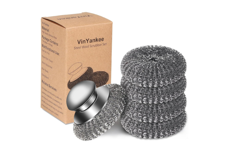 After you’ve scraped off the big stuff, it’s time to tackle whatever’s left clinging to the surface. This is where a chainmail scrubber becomes your best friend.