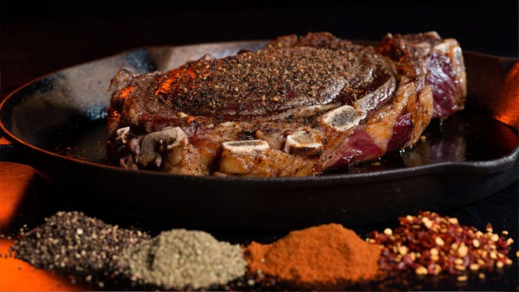 Built to create a serious crust. Black pepper and smoked paprika dominate, coriander adds a subtle floral note that pairs surprisingly well with beef, and the red pepper flakes give the crust a little crackle. Pat it into the steak — don’t just sprinkle it. If you’re cooking in cast iron, this blend does exactly what it’s supposed to. Check out how to get a steakhouse sear at home if you want to get the most out of it.